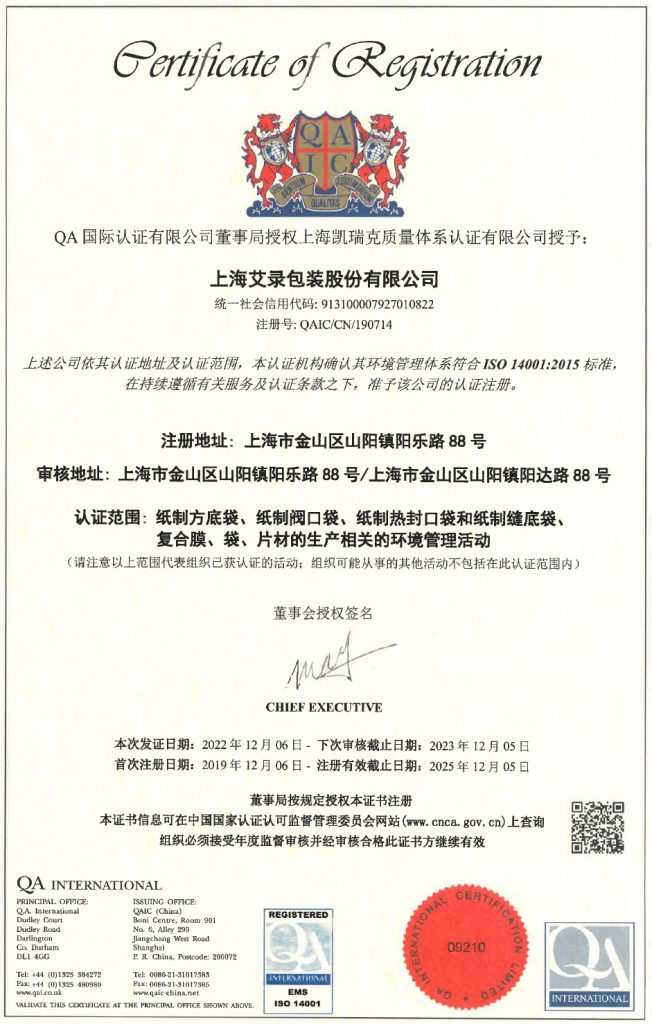 公司是上海市認(rèn)定的科技小巨人、市級企業(yè)技術(shù)中心、上海市高新技術(shù)企業(yè);公司品牌“艾錄包裝”被評定為上海市著名商標(biāo);公司產(chǎn)品食品包裝用牛皮紙袋被認(rèn)定為上海名牌產(chǎn)品;2019年和2020年公司被評為“上海民營制造業(yè)企業(yè)100強(qiáng)”;2018至2021年公司連續(xù)四年進(jìn)入行業(yè)權(quán)威媒體《印刷經(jīng)理人》雜志評選的“中國印刷包裝企業(yè)100強(qiáng)”企業(yè)名單。了解更多
